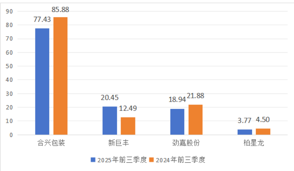 其中,合興包裝實現營收77.43億元,同比下降9.84%;歸屬于上市公司股東的凈利潤(簡稱“凈利潤”)1.60億元,同比增長10.52%。